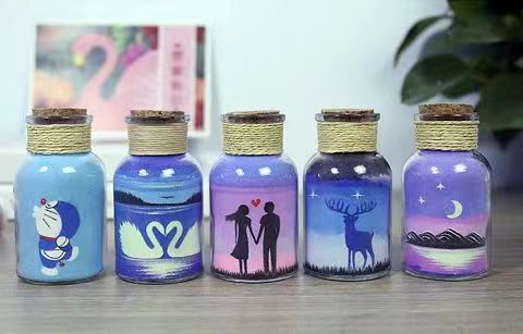 3、沙瓶畫制作, 在老師指導(dǎo)下完成作品并帶走;沙瓶畫被稱為國寶級非物質(zhì)文化遺產(chǎn);小小的許愿瓶里裝滿天馬行空的想象力,利用沙子的可塑性,不使用任何粘合劑,堆砌出五彩斑斕的沙漠奇景。集動手、審美、創(chuàng)造性思維于一體。一粒粒細(xì)沙相互碰撞釋放別具一格的美。