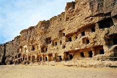 敦煌莫高窟始建于公元366年,在三華里長(zhǎng)的鳴沙山上壁上,密密層層地建造了四百九十多個(gè)洞窟,布滿了彩塑佛像和以佛教故事為題材的壁畫。彩色佛像共有兩千多身,最大的一個(gè)高達(dá)三十三米。壁畫的技巧高超,數(shù)量驚人,如果一方方連接起來,可排成五十多華里長(zhǎng)的畫廊。 前秦苻堅(jiān)建元二年(公元366年)有沙門樂尊者行至此處,見鳴沙山上金光萬道,狀有千佛,于是萌發(fā)開鑿之心,后歷建不斷,遂成佛門圣地,號(hào)為敦煌莫高窟,俗稱千佛洞。