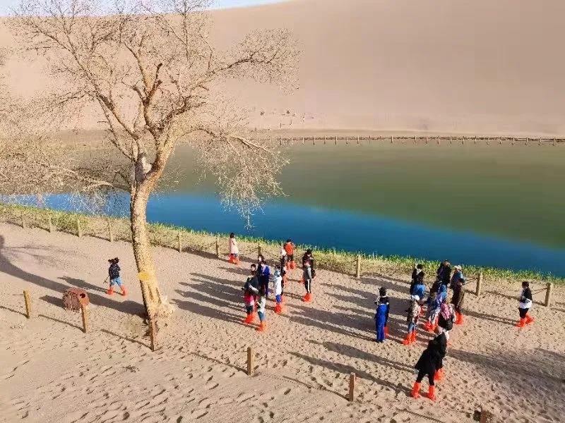 絲路飛天舞神韻,鳴沙盛景迎賓朋。2021“東亞文化之都·中國敦煌活動年”4月9日盛大啟幕。4月10日上午,來自日本、韓國、柬埔寨等外國嘉賓和留學(xué)生代表,以及國內(nèi)部分省市文旅部門和城市代表、文旅企業(yè)代表、媒體記者等參觀考察了鳴沙山月牙泉國家級風(fēng)景名勝區(qū)。 鳴沙山月牙泉風(fēng)景區(qū)位于敦煌市城南5公里,以山稱奇,以泉叫絕,因沙動成響冠雄,因沙抱月泉顯奇,千百年來,以山泉共處、沙水共生的沙漠奇觀著稱于世,被譽為塞外風(fēng)光之一絕。四月的鳴沙山,天朗氣清,滿面春風(fēng)。進入山門,一峰峰駱駝從眼前走過,形成了一道獨特的風(fēng)景線。月牙泉邊,泉水碧波蕩漾,樹木發(fā)出嫩芽,天空湛藍,泉水清透。古色古香的月泉閣下,桃花、梨花、丁香花競相開放。春天的鳴沙山月牙泉,一切都美得剛剛好。 景區(qū)內(nèi),中外嘉賓縱情奇山秀水間,觀大漠風(fēng)光綺麗,賞金色沙海神奇,與大漠深情擁抱,與自然完美邂逅。一隊隊的駱駝在沙漠中穿行而過,仿若絲綢之路的繁盛景象呈現(xiàn)在眼前。中外嘉賓不時對鳴沙山月牙泉山泉相依的美景、沙不掩泉的奇觀贊嘆不已,并對景區(qū)優(yōu)質(zhì)貼心的服務(wù)表示誠摯的感謝。據(jù)了解,“東亞文化之都”是中日韓共同推進的亞洲第一個國際性文化城市命名活動,自2013年啟動以來,各國每年評選1至2個城市。目前,中日韓三國已有25座城市獲此榮譽。當(dāng)選城市將以“東亞文化之都”名義集中開展形式多樣的國際文化與旅游交流合作。2020年12月,敦煌市與紹興市、日本的北九州市、韓國的順天市共同當(dāng)選2021年“東亞文化之都”。 |